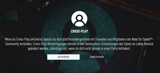 Als Erstes muss man sich natürlich das neue Juni-Update für Need for Speed Heat herunterladen. Wenn man das Update heruntergeladen und installiert hat, dann kann man das Spiel ganz normal starten und beim Spielstart wird schon die Neuerung mit dem Crossplay angezeigt. Hier kann man sich entscheiden, ob man das Crossplay aktivieren oder aber auch deaktivieren möchte. Wenn man das Crossplay erst einmal deaktiviert hat, dann kann man es natürlich auch jederzeit über die Einstellungen wieder aktivieren.