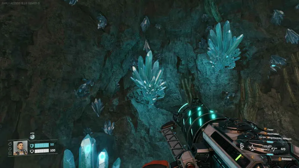 Die unterirdischen Höhlen sind über den gesamten Planeten verteilt und den Eingang erkennst du an dem großen durch Wurzeln versperrten Loch im Boden. Die Wurzeln kannst du nicht so ohne weiteres mit dem Abbauwerkzeug, einer Waffe oder einer Granate entfernen. Stattdessen musst du bis zur nächsten Sonneneruption warten. Nach der Rupture verschwinden die Wurzeln und der Eingang in die Höhle wird geöffnet. Anschließend kannst du die Höhle erkunden und dort auffindbare Materialien farmen. Aufgrund der starken Hitze der Sonneneruption hast du auch nicht mit Aliens zu kämpfen. Sobald die Welt wieder zu Blühen beginnt und grün wird, verschließt sich automatisch der Eingang der unterirdischen Höhle und du musst wieder bis zur nächsten Sonneneruption warten. Aktuell beträgt die Zeit 40 Minuten.