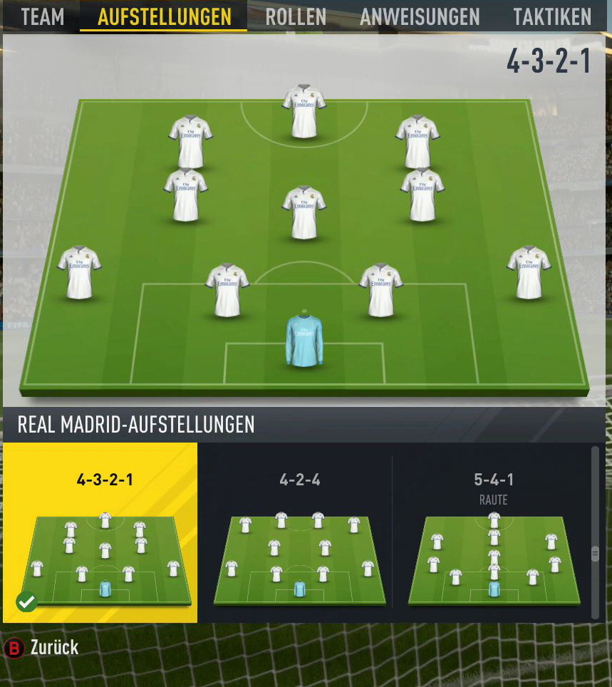 Früher galt im Fußball das 4-4-2-System als die beste Allround-Aufstellung, in FIFA 17 wird derzeit vor allem das 4-3-2-1 gespielt. Diese Formation hat diverse Vorteile: Sie orientiert sich an der Fußballwelt, wo es zuletzt viel über Kurzpässe und ein starkes Mittelfeld ging. Entsprechend sind viele der Spieler, die in FIFA 17 verfügbar sind, für eine solche Formation geeignet.