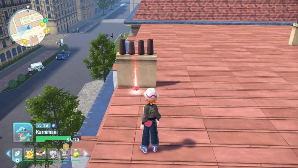 Dort warten nicht nur einige wilde Pokémon auf dich, sondern auch einige Pokebälle mit nützlichen Gegenständen wie eben dem hier gesuchten Mondstein. Der Pokeball liegt auf dem Dach links hinter einem Schornstein.
