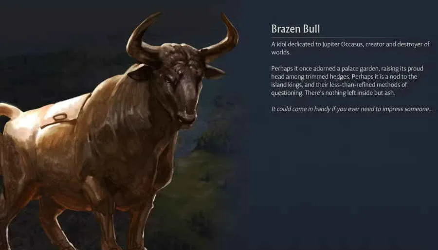 Anders als anfangs gedacht ist das majestätische Biest ganz einfach zu finden. Denn du hast es wahrscheinlich schon in deinem Kontor. Das majestätisches Biest ist eine Statue eines bronzenen Bullen, den du automatisch beim Abbau der Ruinen des alten Ambrosia gefunden hast. Die bronze Bullenstatue befindet sich in deinem Kontor-Inventar und du kannst die Statue dort einfach in ein Schiff verladen und zu Athr bringen.