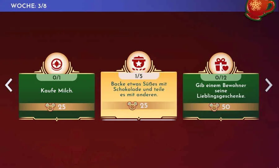 Im neuen Winter-Sternenpfad in Disney Dreamlight Valley sind vor einigen Stunden die neuen Route-Pflichten für die dritte Woche freigeschaltet worden. Nachdem du in der letzten Woche unter anderem einen Schneemann bauen und kleine Steine sammeln musstest, sollst du in dieser Woche die Bewohner beschenken und etwas Süßes mit Schokolade backen. Ich habe mich gefragt: Welche Rezepte und Gerichte sind hier gesucht?