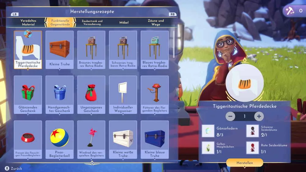 Sobald du das Freundschaftslevel 10 bei Tigger erreicht hast, startet automatisch seine letzte Fruendschaftsaufgabe namens „Ein Tiggeritastischer Tag“. In der Quest musst du zuerst ein paar Gerichte zubereiten, um Tigger wieder aufzumuntern. Danach musst du dich als Tigger verkleiden und ein paar Hindernisse in den Blütenwunschbergen aufstellen. Zuletzt folgt dann noch die Herstellung einer Pferdedecke und eines Plakats. Alles, was du für die Quest benötigst und wo du es finden kannst, habe ich in dieser Lösung zusammengefasst.