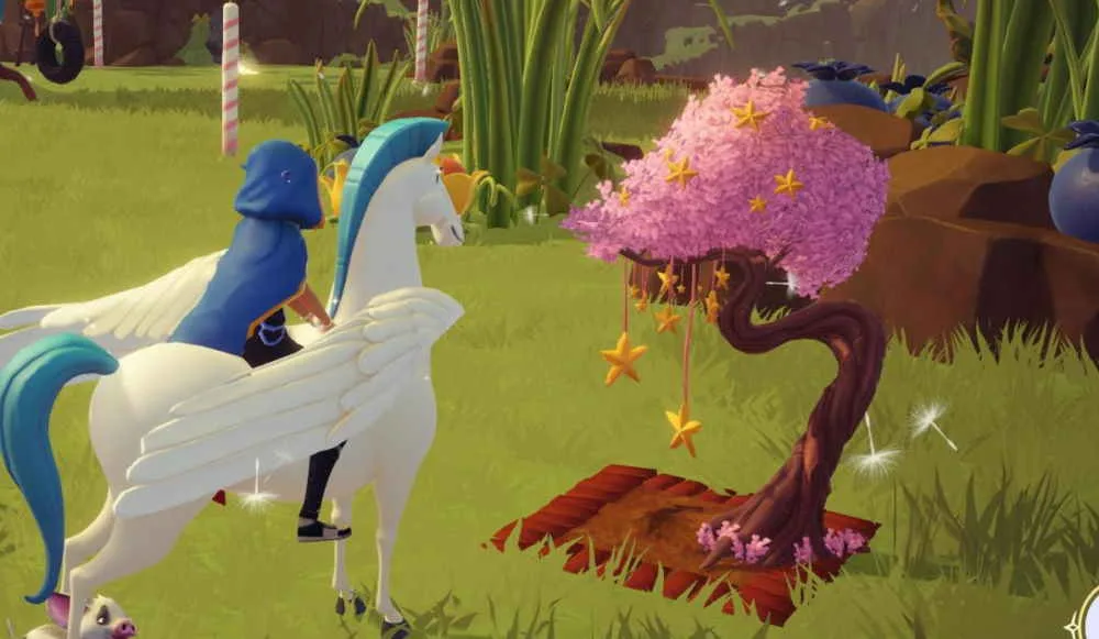 Für die Zubereitung des Nektar-Soda mit Sprudels sind zwei Zutaten erforderlich un dazu gehören die neue Bonsai-Sternenfrucht und ein Slush-Eis. Die Bonsai-Sternenfrucht ist eine von fünf neuen Früchten aus der Erweiterung du kannst sie an den Bäumen in den Hönigfällen, dem Feen-Hügel und dem Eisbecher-Ufer finden. Alle drei Gebiete befinden sich in dem Feenhain im Nordosten der Karte. Das Gebiet wird automatisch nach Abschluss der Schneewittchen und Cruella-Quests freigeschaltet, da du dich auf den Weg machen musst, den guten Tigger zu befreien. Sobald du den Feenhain freigeschaltet hast, kannst du an den im Screenshot sichtbaren Bäumen die Bonsai-Sternenfrucht abpflücken. Die Bäumchen sind an den rosa Blätter und den herunterhängenden Sternenfrüchten leicht zu finden. Das Slush-Eis kannst du wie aus dem Dreamlight Valley gewohnt bei Remy im Restaurant kaufen. Hinter der Theke ist ein Regal mit Zutaten wie dem Slush-Eis.