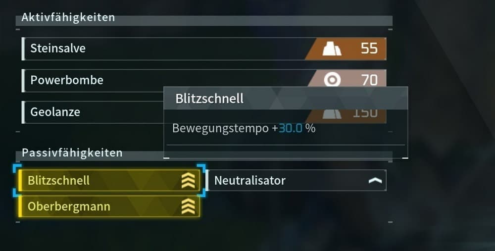 | Blitzschnell | +30% Laufgeschwindigkeit |