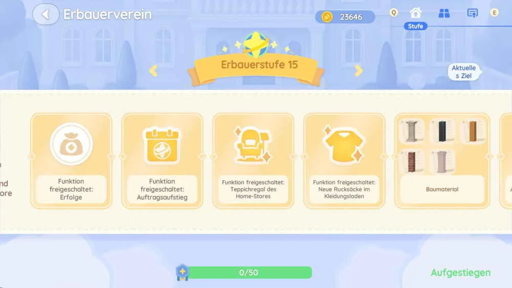 Bevor du die ersten Abzeichen freischalten und in der Vitrine auswählen kannst, musst du erst einmal eine Weile spielen. Genauer gesagt musst du bis zur Freischaltung der Erbauerstufe 15 spielen. Mit der Erbauerstufe 15 werden die Erfolge freigeschaltet. Die Erfolge findest du dann auf das Smartwatch als zusätzlichen Menüpunkt. Öffne das Erfolge-Menü und du bekommst die verfügbaren Abzeichen inklusive des Freischaltungsfortschritts angezeigt. Es gibt zum Beispiel Abzeichen wie „Kein Rückweg ohne Beute“ bei dem du das Angelhobby auf Stufe 10 bringen oder der „Küchengott der Stadt“ bei dem du das Kochhobby auf Stufe 10 hochleveln musst. Weiter unten sind auch noch einige Abzeichen mit drei Fragezeichen sichtbar, die werden erst im späteren Spielverlauf freigeschaltet.