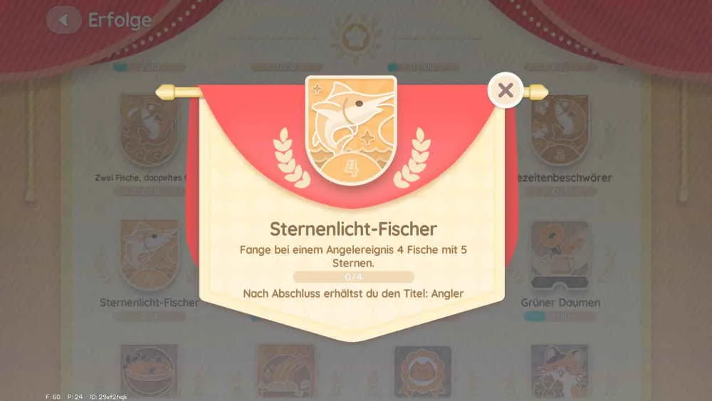 | Sternenlicht-Fischer | Fange bei einem Angelereignis 4 Fische mit 5 Sternen. |