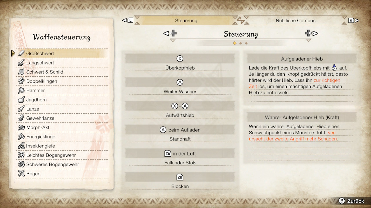 Wahrer-Aufgeladener-Hieb-Kombo: Aufgeladener Hieb (X gedrückt halten) > Starker Aufgeladener Hieb (Linker Joystick + X gedrückt halten) > Starker Weiter Hieb (A) > Wahrer Aufgeladener Hieb (X gedrückt halten)