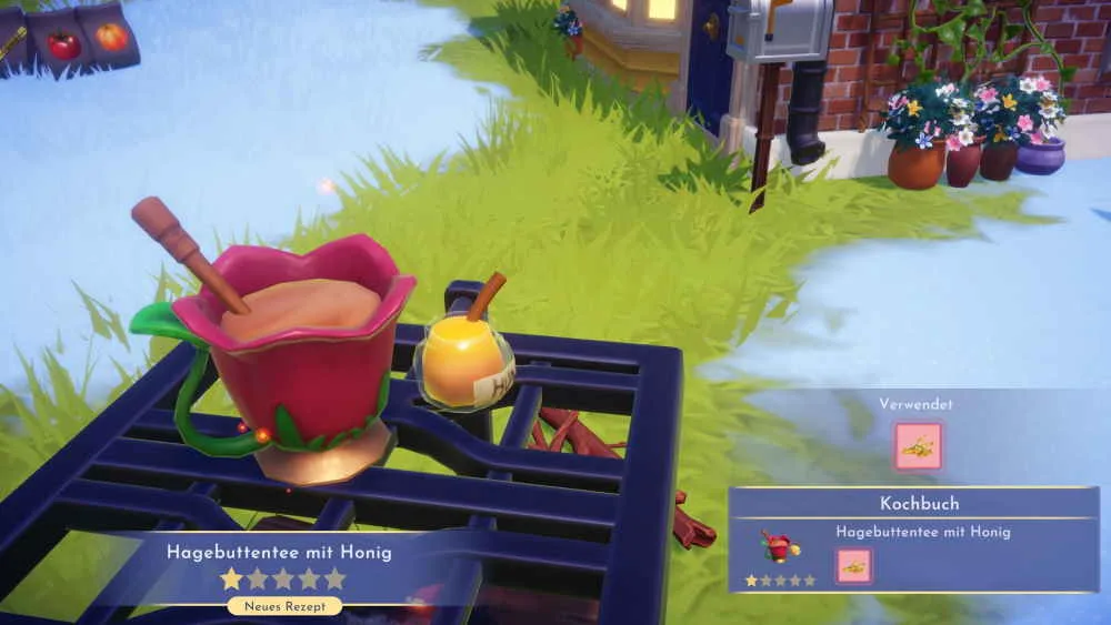 Für den Hagebuttentee mit Honig benötigst du nur eine Zutat und das ist die neue Honigkoralle. Anders als anfangs gedacht ist die Honigkoralle im Sammlung-Menü nicht in der Kategorie Zutaten zu finden, sondern unter den Fischen. Wie der Name schon sagt ist es eine Koralle und du kannst sie erst später im Spiel bekommen. Genauer gesagt kannst du die besondere Koralle aus Honig erst im Feenhain mit der Angel fischen. Der Feenhain ist das Gebiet im Nordosten der Insel, welches erst relativ am Ende freigeschaltet wird. Bis dahin musst du also erst noch die Quests von Schneewittchen und Cruella erledigen. Nach der zweiten Kristallhöhle erhältst du dann den Auftrag den Feenhain zu betreten und musst dann den guten Tigger von einem riesigen Baum befreien. Damit wird dann auch der Feenhain dauerhaft freigeschaltet.