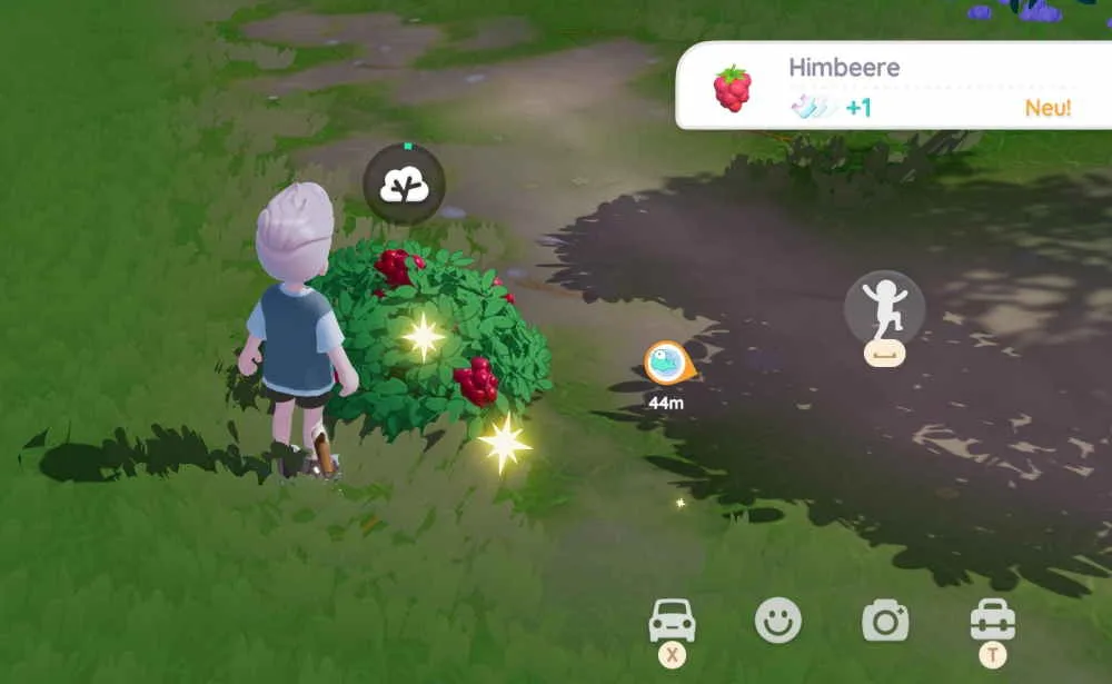 Ich hatte im Inventar schon einiges an Obst und Früchte gesammelt, wie zum Beispiel Äpfel und Blaubeeren, allerdings war in dem Gebiet rund um mein Haus weit und breit keine Himbeere zu finden. Um die Frucht zu finden, musst du nach kleinen Himbeersträuchern suchen und die spawnen unter anderem im Westen der Karte. Schwinge dich also auf deinen Roller und fahre in den Westen. In dem Gebiet vor den Windmühlen findest du dann auf den davor liegenden Grundstücken sowie im Windmüphlenblumenfeld und dem Waldberg einige Sträuche mit roten Himbeeren. Wie andere Früchte respawnen auch die Himbeeren nach kurzer Zeit, sodass du sie immer wieder farmen kannst.