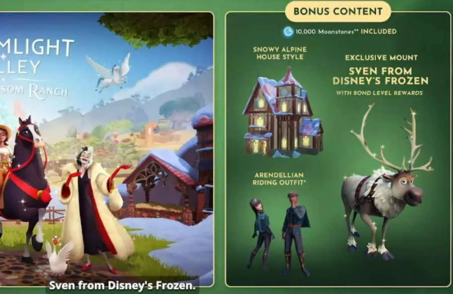 Vor wenigen Tagen ist das große Update namens Wishblossom Ranch für Disney Dreamlight Valley erschienen. Das kostenpflichtige Update bringt eine komplett neue Insel ins Spiel und dort warten nicht nur neue Charaktere wie Schneewittchen, Cruella und Tigger, sondern es gibt auch viele weitere Neuerungen wie zum Beispiel die Pferde. Die Pferde wie Maximus, Khan und Pegasus sind nicht nur reine Deko, sondern du kannst auf ihnen reiten und sie haben auch noch spezielle Fähigkeiten. Insgesamt kannst du vier Pferde im Laufe der Story freischalten. Wenn du dir die Premium-Version von der Wishblossom Ranch Erweiterung gekauft hast, dann erhältst du noch zusätzliche Boni wie das Arendellian Reiter-Outfit, ein zugeschneites Haus und Sven aus Die Eiskönigin – Völlig unverfroren.