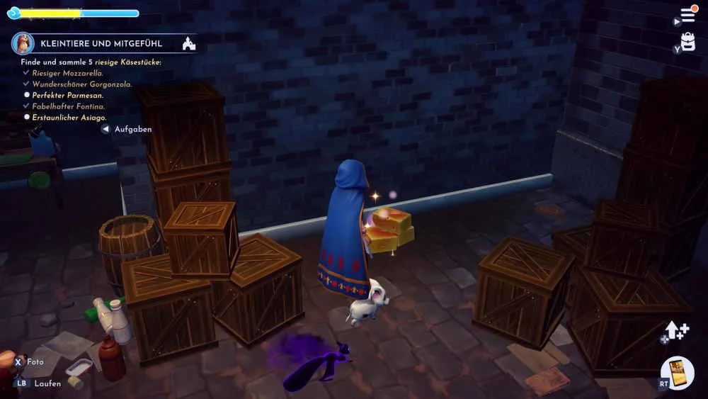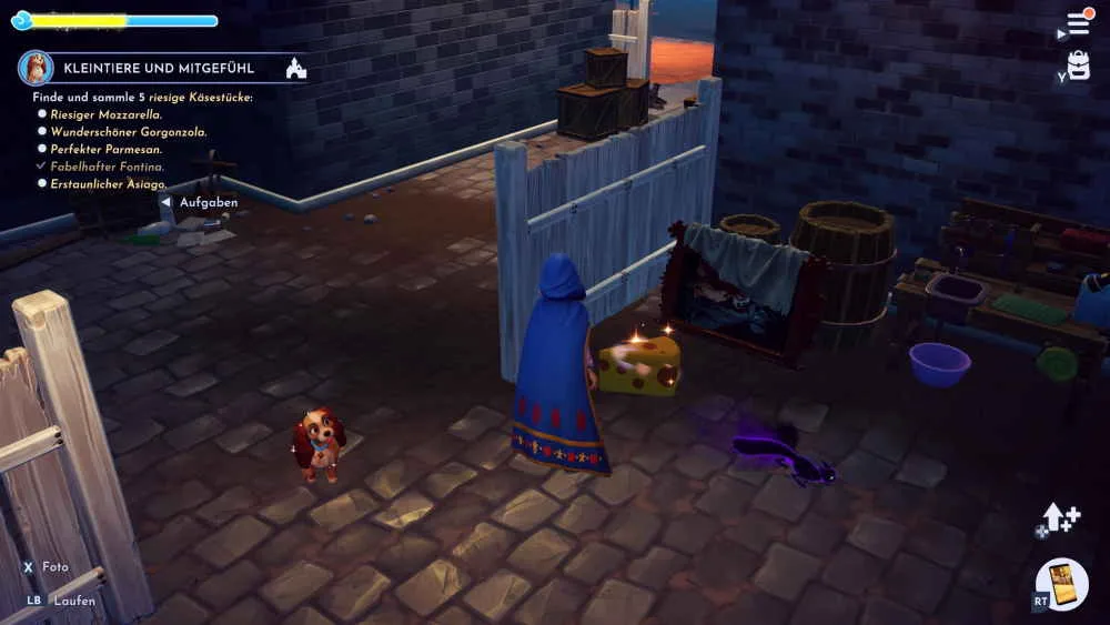 Irgendetwas ist komisch an dem Hundebett hinten im Zwinger und du sollst dir das mal anschauen. Schaue dir die Duftwolke an und verlasse das Tierheim. Die komplette Stadt ist voll mit riesigen Spaghetti und du musst dir den Weg mit Hilfe der Spitzhacke frei machen. Im Dreamlight Valley angekommen, folgt dann noch ein Foto mit Susi und damit ist auch die „Kleintiere und Mitgefühl“ Quest in DDV beendet.