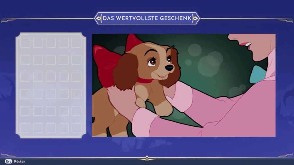 Kehre zuerst ins Reich von Susi und Strolch zurück und sprich mit ihr. Sie steht am Tisch hinter Tonys Restaurant. Nach dem Gespräch solltest du die Erinnerungen im Reich von Susi und Strolch neu ordnen. Im Prinzip handelt es sich um eine Erinnerung als Puzzle bei dem du die einzelnen Puzzle-Teile richtig anordnen musst. Aufgrund der bereits sichtbaren Umrisse der einzelnen Puzzle-Teile ist die Lösung relativ einfach.