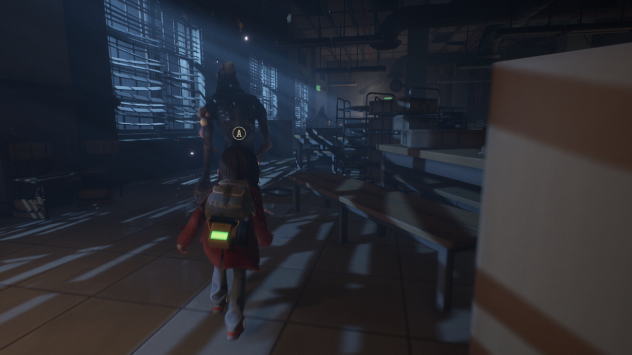 Am Anfang des Spiels habt ihr noch keine Waffe und müsst um die Monster herumschleichen. Dabei helfen euch vor allem die Getränkeautomaten, die überall in der Schule stehen. Die Dosen aus den Automaten könnt ihr werfen, um die Monster abzulenken und so ungesehen an ihnen vorbeizuhuschen.