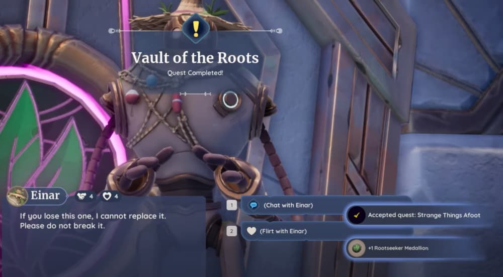 Vor wenigen Tagen hat Palia ein größeres Update spendiert bekommen und zu den Neuerungen gehören neben dem Tempel der Wurzeln auch einige neue Quests. Nachdem man den Tempel der Wurzeln die „Schatzkammer der Wurzeln“-Quest bei Einar abgeschlossen hat, erhält man automatisch die nächste Quest und die heißt „Merkwürdige Dinge stehen bevor“ (engl. Strange Things Afoot). In der Quest-Beschreibung heißt es „Ein mysteriöses rosa Licht ist vom Himmel herabgestiegen“ und man soll jetzt im ersten Schritt mit der guten Jina über das mysteriöse Ereignis sprechen. Jina findet man entweder direkt in der Nähe von Einar oder neben den Ruinen in der Nähe von Heklas Zelt.