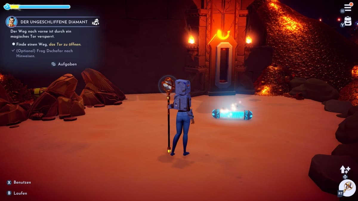 - Das Tor ist geöffnet und man kann weiter die Wunderhöhle erkunden. Am Ende findet man eine große Treppe mit einer Statue in der man das Juwel der Zeit entnehmen kann.