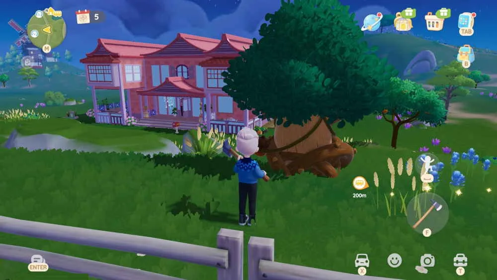 Die wandernde Eiche ist ein sehr seltenes Holz und du bekommst es nur von einem Baum. Dabei handelt es sich nicht um einen normalen Baum im Spiel, sondern um einen lebendigen Baum, der jeden Tag an einer anderen Stelle spawnt. Er unterscheidet sich vom Aussehen her deutlich von anderen Bäumen, hat Wurzeln um sich und trägt eine Eichel an der Seite. Ähnlich wie das Fluorit-Vorkommen mit dem Maulwurf spawnt Eichy irgendwo in der Nähe der Grundstücke. Am besten fährst du die Hauptstraße an den Spielergrundstücken mit deinem Fahrzeug ab und hältest an den Seiten immer Ausschau nach einem Baum, der von Wurzeln gefangen wird. Wenn du Eichy gefunden hast, dann musst du einfach nur die Axt ausrüsten und auf die Wurzeln schlagen. Für das Befreien von Eichy erhältst du dann als Belohnung etwas wandernde Eichenholz. Anders als bei den anderen Bäumen ist die Anzahl pro Tag begrenzt. Wenn du also die Wurzeln entfernt und Eichy wieder gut bei Laune ist, dann musst du ein wenig Zeit vergehen lassen, bevor du wieder Glatt-Eiche abbauen kannst.