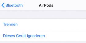 Sollte es weiterhin zu Ton-Poblemen kommen, obwohl die Airpods verbunden sind, dann hilft meist ein entkoppeln und zurücksetzen der Kopfhörer weiter. Dazu einfach mal in den Bluetooth-Einstellungen die Airpods aufrufen und auf „Dieses Gerät ignorieren“ tippen. Danach steckt man die Airpods zurück in das Ladecase, schließt es und hält die Taste auf der Rückseite für rund 10 bis 15 Sekunden gedrückt. Wenn die Airpods auf den Werkszustand zurückgesetzt wurden, dann kann man diese ganz normal wieder mit dem iPhone verbinden.