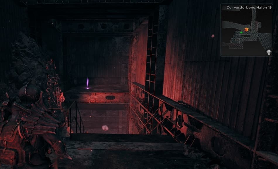 In der Welt Erde der Saat findet man den verdorbenen Hafen, wo man wiederum einige „lila Gegenstände“ finden kann. Dazu gehört zum Beispiel das „verfallene Herz“ oder auch den Ring namens „Stein des kinetischen Kreislaufs“. Während man die meisten lila Gegenstände in dem verdorbenen Hafen relativ einfach finden kann, so gibt es auch einen Gegenstand, bei dem der eine oder andere Spieler vielleicht ähnlich wie wir nicht weiterkommt. Ein lila Gegenstand liegt gegenüber von einem Checkpoint und man kann den Gegenstand nicht mit einem Sprung von der Treppe erreichen. Stellt sich die Frage, wie kommt man dann an den lila Gegenstand und wo befindet sich der geheime Gang?