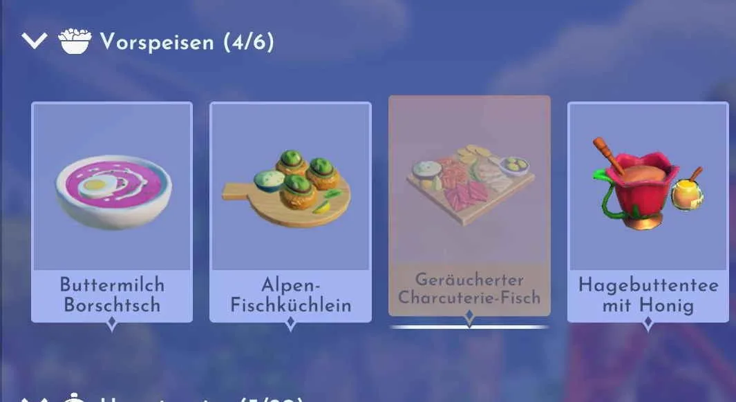 Vor wenigen Tagen hat Disney Dreamlight Valley ein neues und kostenpflichtiges Update spendiert bekommen. Mit der Wunschblüten Farm gelangst du in die Blütenwunschbergen Insel. Dort triffst du nicht nur auf neue Charaktere wie Schneewittchen oder Cruella, sondern es gibt auch neue Materialien, Zutaten und damit einige neue Rezepte. Wenn du gerade dabei bist, die sechs neuen Vorspeisen freizuschalten, dann fragst du dich vielleicht nach den Zutaten für das Gericht „geräucherter Charcuterie Fisch“.