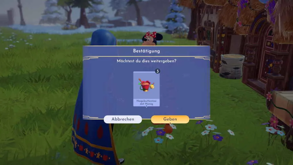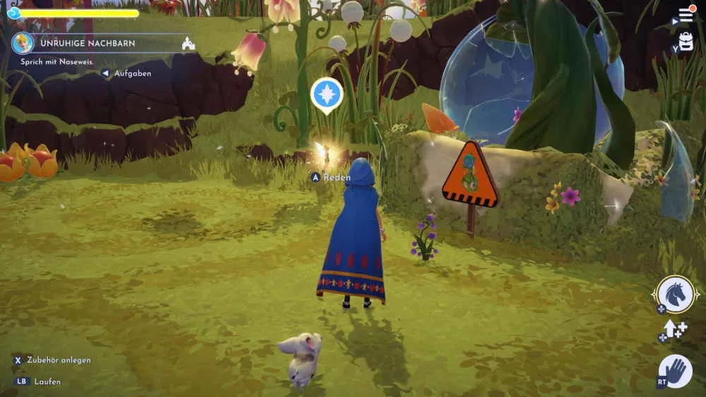 Bringe Tigger die Gerichte und hör dir seine Entschuldigung bei Naseweis an. Zum Abschluss folgt noch ein Gespräch mit Naseweis und damit ist die Quest beendet. Mit Freundschaftslevel 7 geht es weiter mit der „Zeug von Naseweis“ Quest.