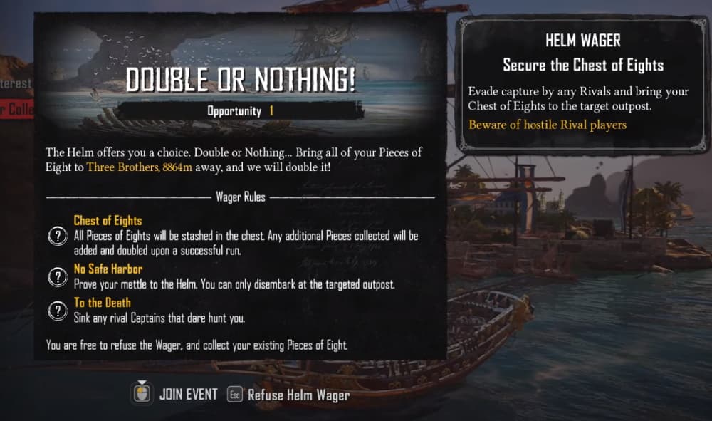 Ruder Wette Event in Skull & Bones starten