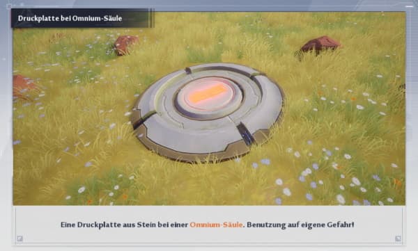 Die Fundorte der Druckplatten in den einzelnen Gebieten wird nach der Entdeckung übrigens auch auf der Karte angezeigt. Neben den „normalen“ Druckplatten aus Stein, gibt es auch noch die Druckplatten bei Omnium-Säulen, erkennbar an der leuchtenden Säule in der Mitte. In der spielinternen Hilfe heißt es zu den Druckplatten auch folgendes „Eine Druckplatte aus Stein, die durch einen starken Aufprall aktiviert wird. Benutzung auf eigene Gefahr“.