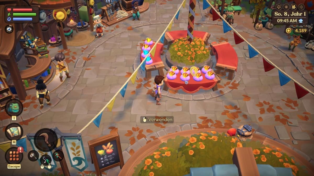 Am Anfang kann man einen Großteil der im Spiel gefundenen Gegenstände aber auch der Ernte auf dem Marktplatz verkaufen. Auf dem Marktplatz in dem Stadtzentrum stehen vier Tische mit einer roten Tischdecke. Auf den Markttischen kann man jetzt jeweils acht Gegenstände platzieren, die man verkaufen möchte. Die Gegenstände werden nicht direkt verkauft, sondern bleiben bis zum Tagesende auf dem Markttisch stehen und werden dann automatisch verkauft. Man bekommt das Geld auch erst kurz vor Tagesende.