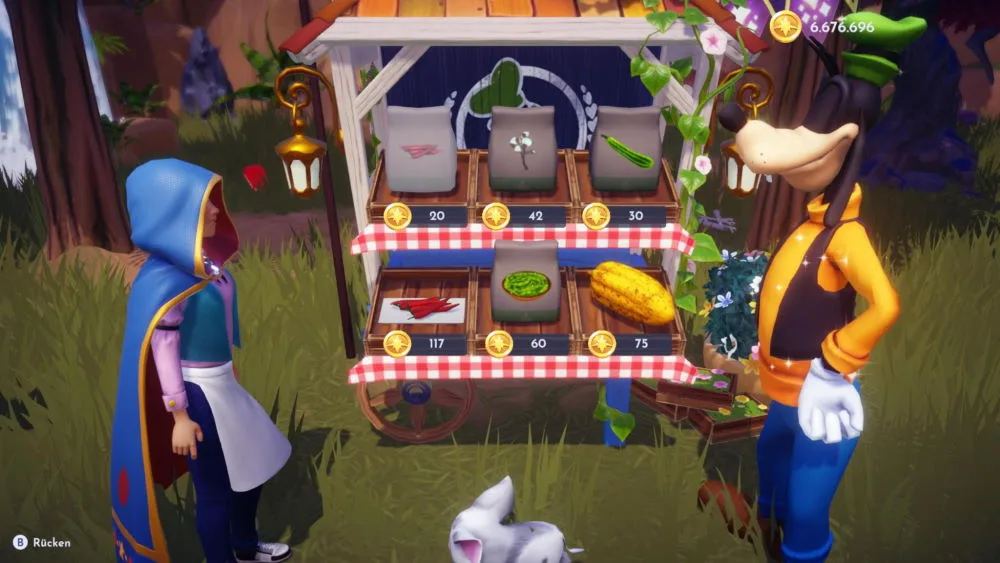 Mit dem Lieblingsgetränk der Katze ist natürlich die Milch gemeint. Die Zutaten wie Milch oder auch Eier und Käse kannst du im Chez Remy Restaurant kaufen. Hinter dem Herd steht ein Regal mit den Zutaten. Für die Sternenpfad-Aufgabe musst du zwei mal Milch für je 230 Sternenmünzen kaufen.