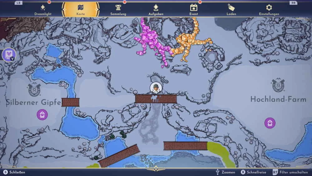 Bevor du mit der eigentlichen Quest starten kannst, musst du erst einmal mit Pegasus das Freundschaftslevel 5 erreichen. Die Pferde kannst du vor allem durch tägliches bürsten, streicheln und füttern ihres Lieblingsessens erhöhen. Daneben sammelst du auch beim Gallopieren über Hindernisse und anderen Aktionen wie das Zerstören von Felsbrocken oder das Graben mit dem Pferd ein paar XP. Nach ein bis zwei Tagen solltest du mit Pegasus das Freundschaftslevel 5 erreicht haben und dann geht es zu Schneewittchen. Sprich mit Schneewittchen und sie überreicht dir ein Halsband. Damit geht es dann zu Cruella und überreicht dir ein weiteres Schmuckstück. Zu guter Letzt musst du bei Tigger vorbeischauen und er überreicht dir ein par Ohrringe. Ziehe die drei Schmuckstücke über die Garderobe an und sprich mit der riesigen Wunschblüte im Herzen. Mit dem Herzen ist das große Wunschblütenherz in der Kristallhöhle gemeint. Der Fundort ist nochmal auf der Karte sichtbar.