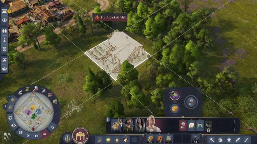 In Anno 117 bekommst du unten links die Fruchtbarkeit der aktuellen Insel angezeigt. Oder anders gesagt, du kannst sehen, was du auf der Insel angebaut werden kann. Wenn die „Fruchtbarkeit fehlt“ Meldung angezeigt wird, dann solltest du unten links erst einmal nachschauen, ob das gesuchte Material oder die gesuchten Rohstoffe überhaupt auf deiner Insel gibt.